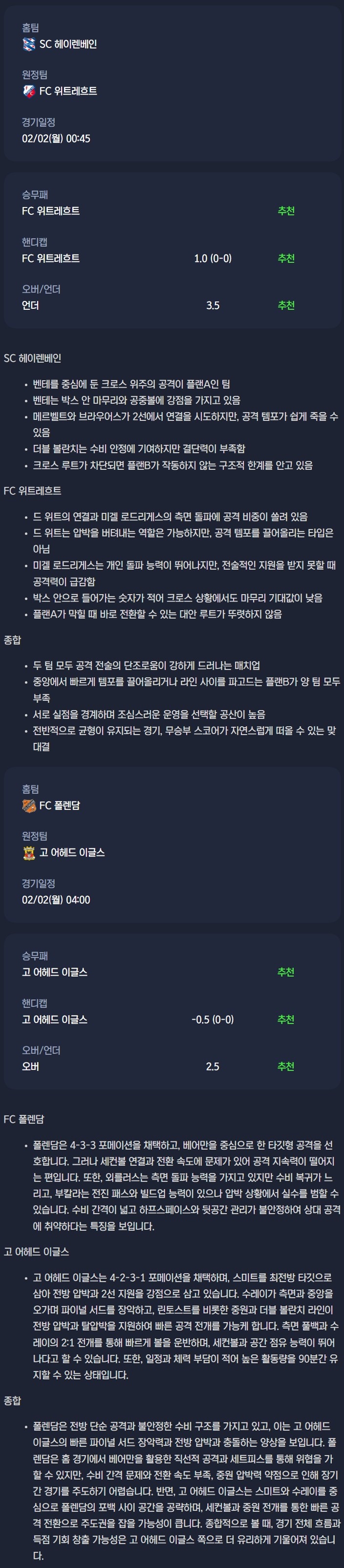 2026년 02월 02일 분데스리가 분석자료 / 축구분석