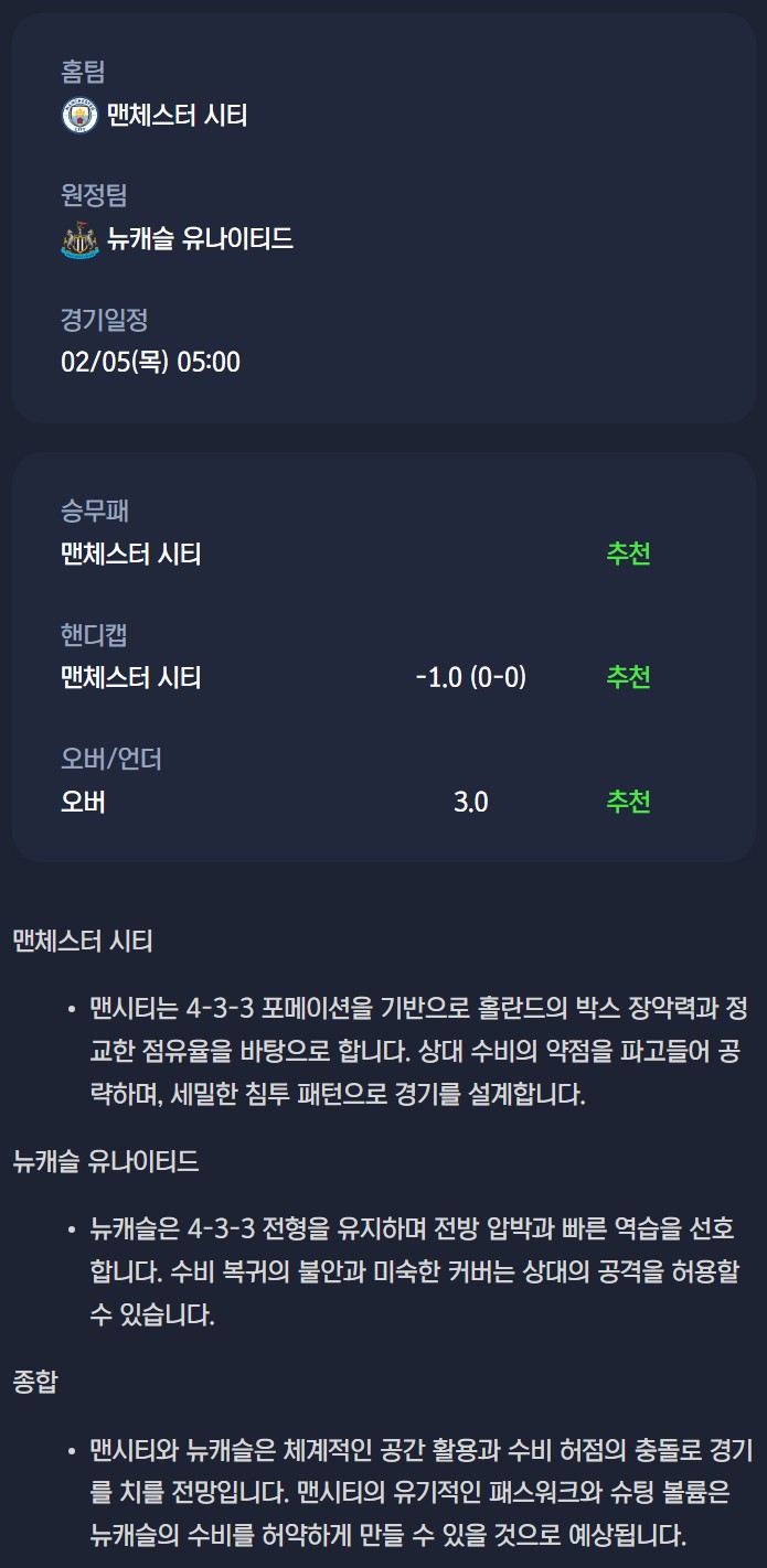 맨체스터 시티 vs 뉴캐슬 유나이티드