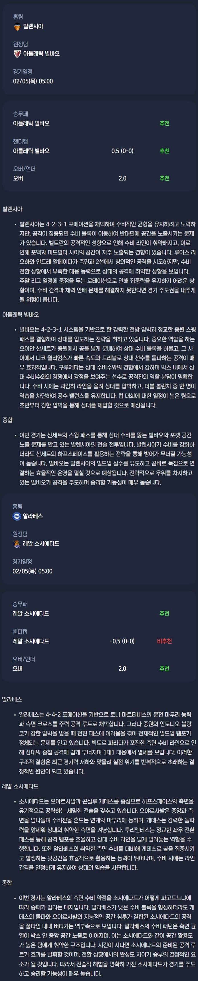 2026년 02월 05일 스페인 코파델레이 분석자료 / 축구분석