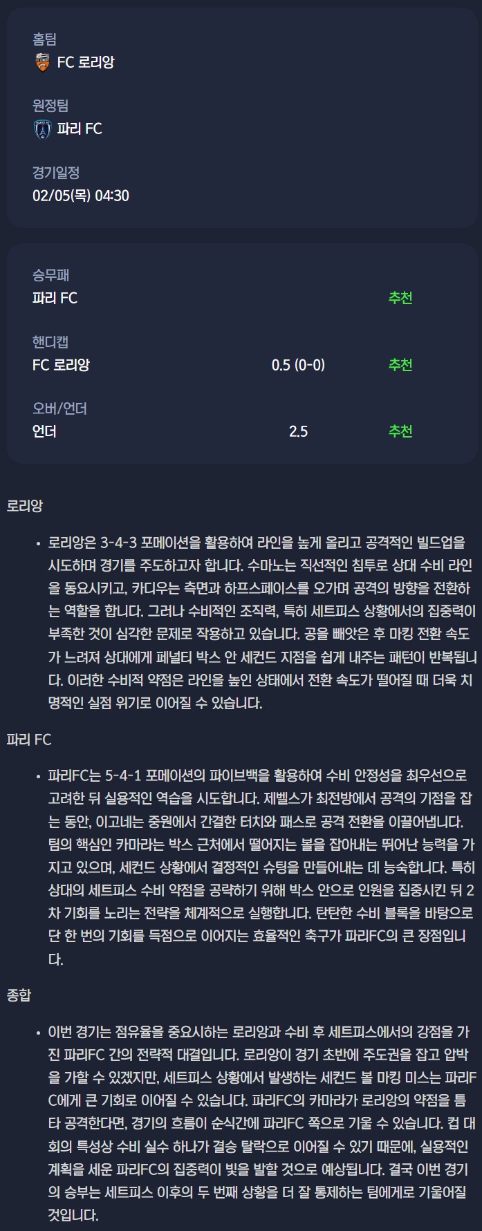 2026년 02월 05일 프랑스 FA컵 분석자료 / 축구분석