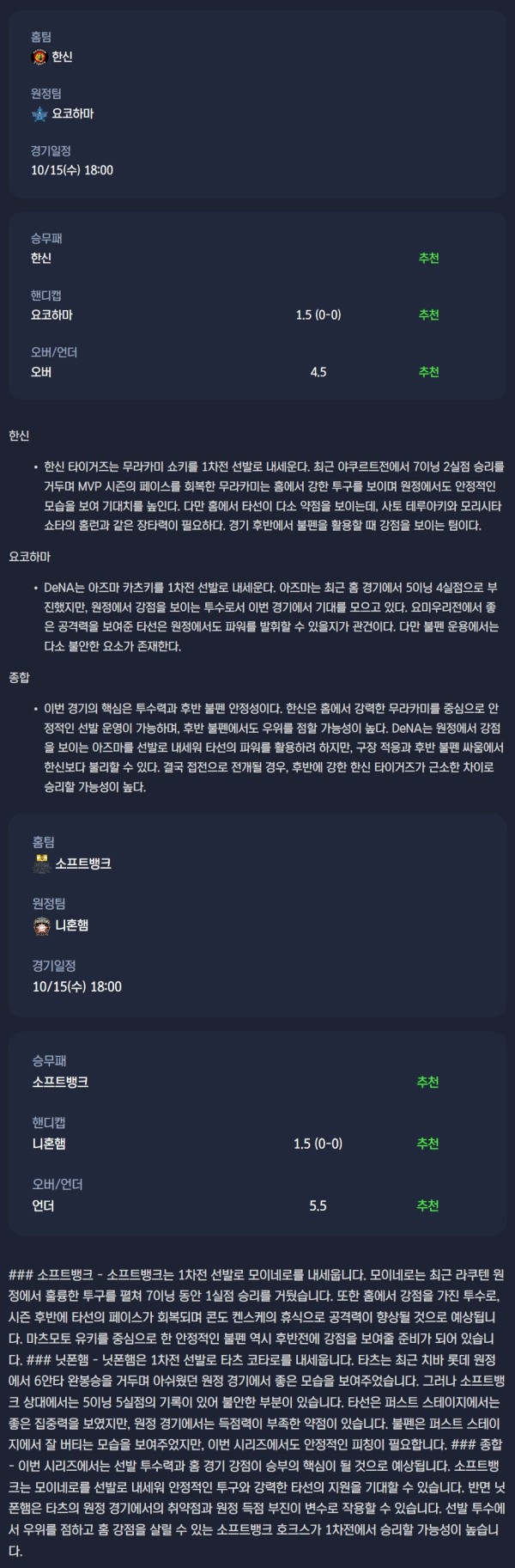 2025-10-15 NPB 분석자료 스포츠 무료중계 / 스포츠 중계