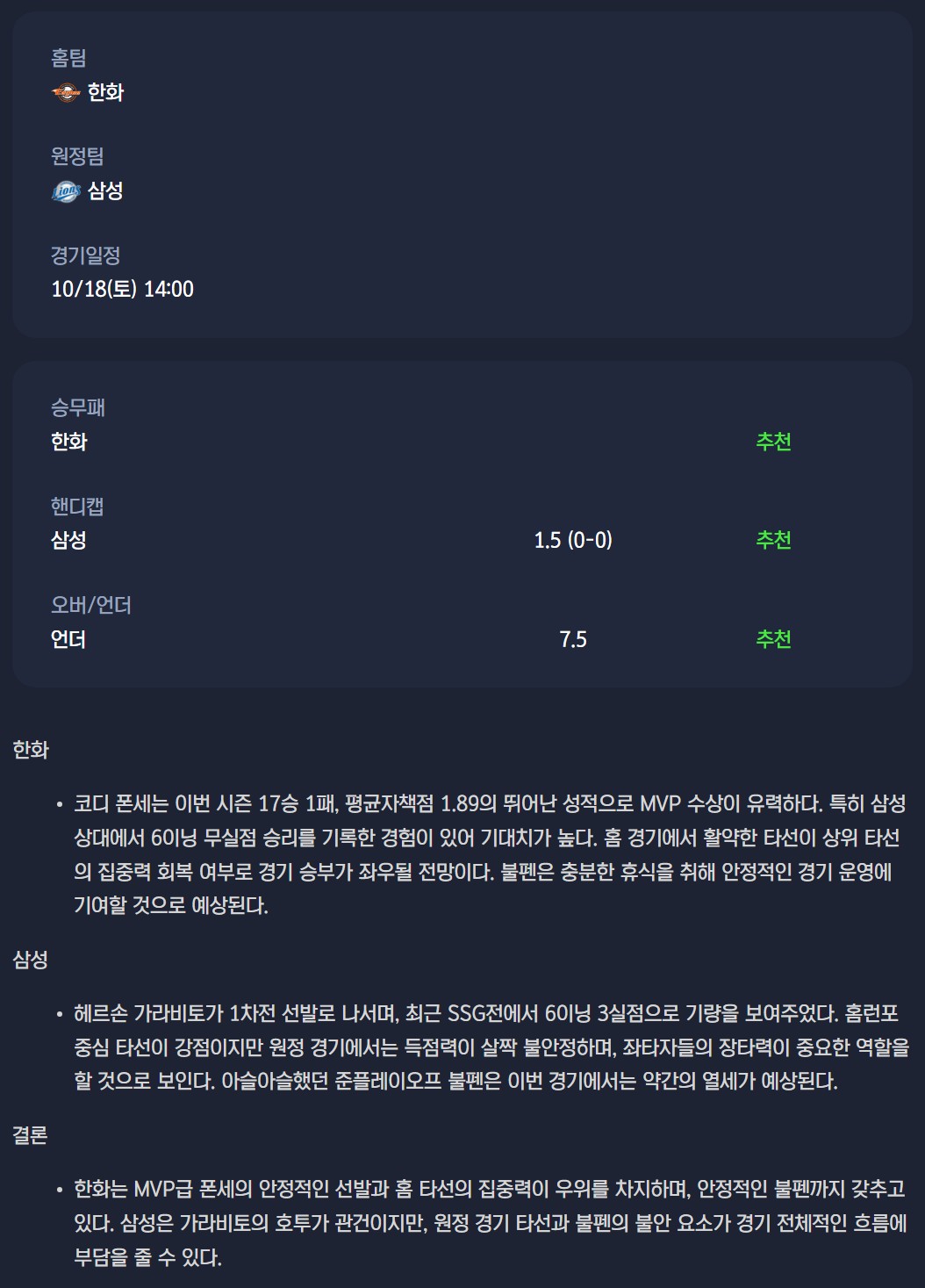 318 2025-10-07 KBO 분석자료 스포츠 무료중계 / 스포츠 중계 최고관리자 10.07 76
