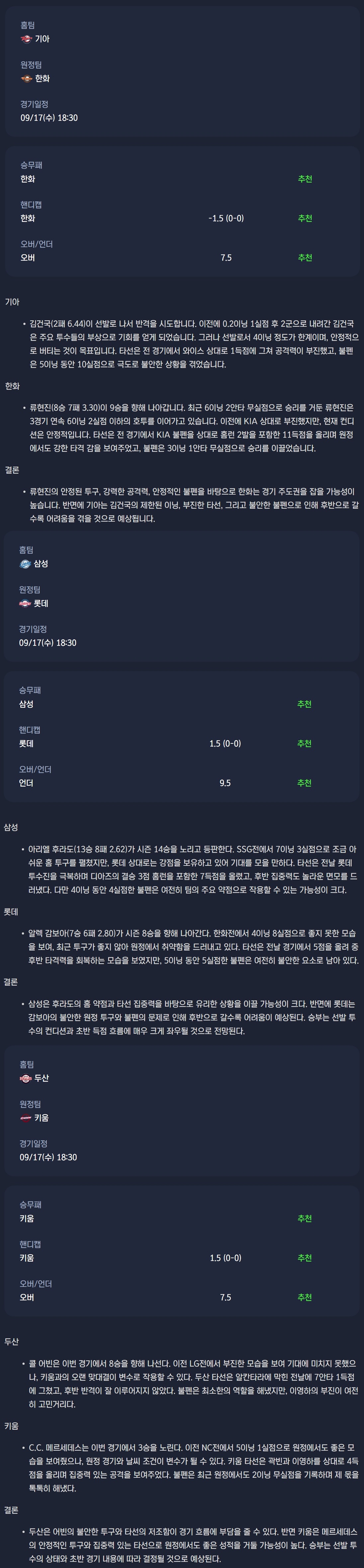 2025-09-17 KBO 분석자료 스포츠 무료중계 / 스포츠 중계