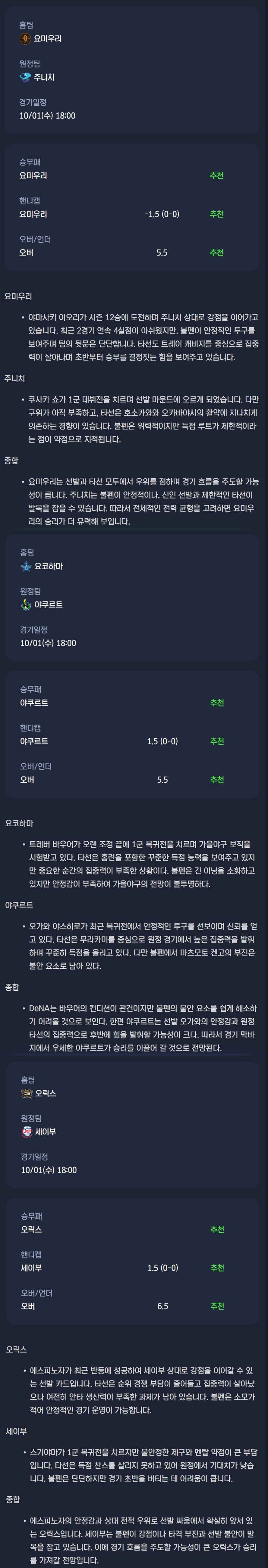 2025-10-01 NPB 분석자료 스포츠 무료중계 / 스포츠 중계