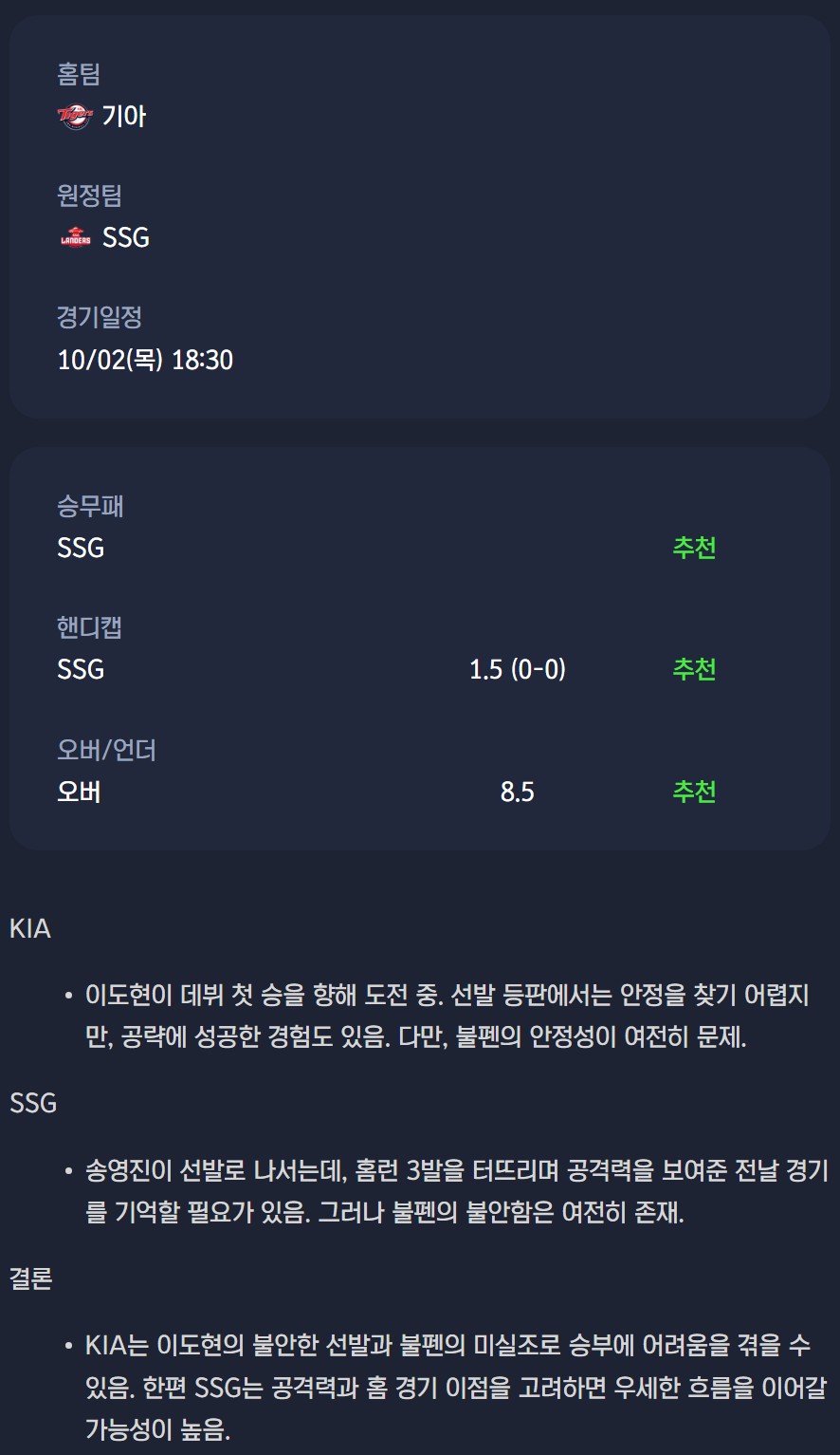 2025-10-02 KBO 분석자료 스포츠 무료중계 / 스포츠 중계