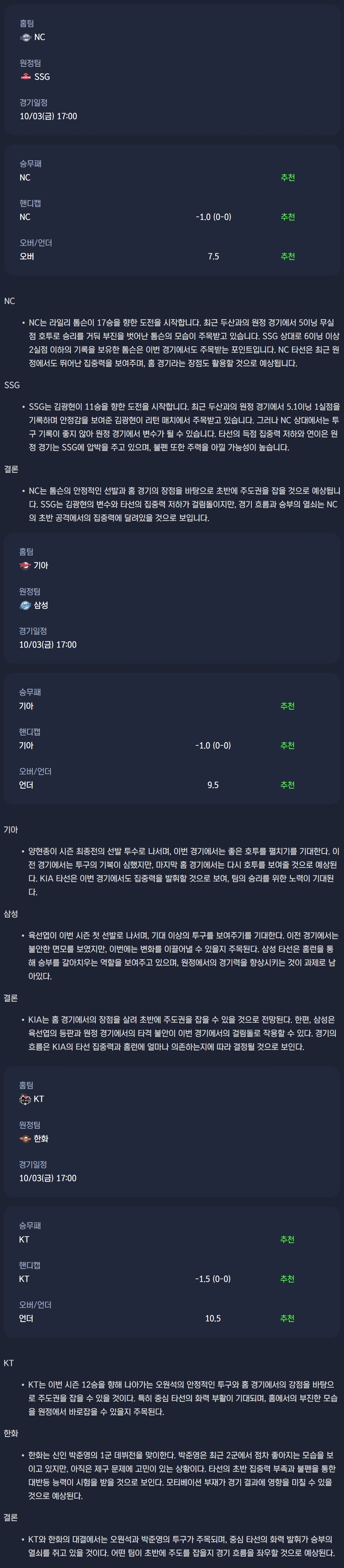 2025-10-03 KBO 분석자료 스포츠 무료중계 / 스포츠 중계