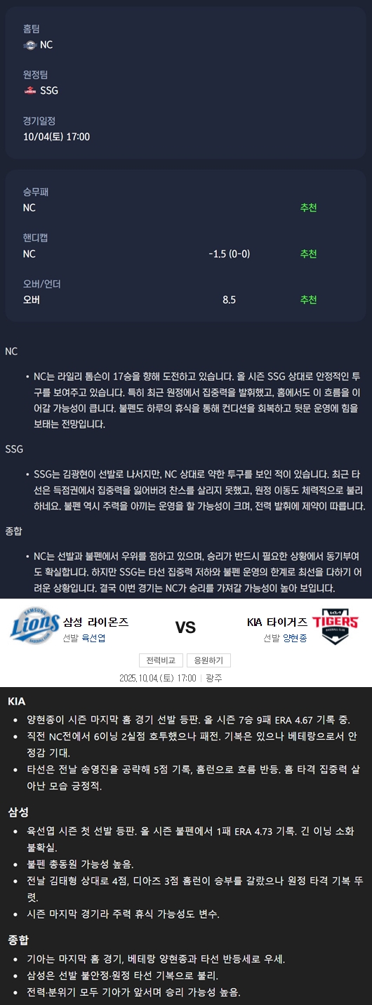 2025-10-04 KBO 분석자료 스포츠 무료중계 / 스포츠 중계
