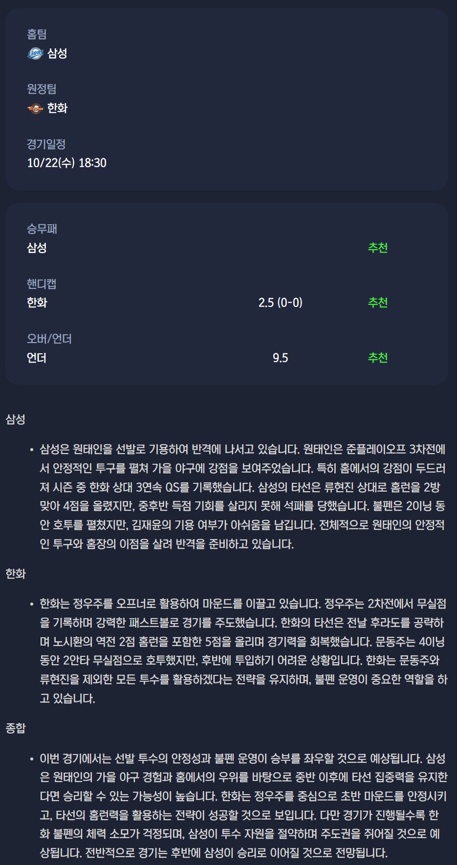 330 2025-10-18 KBO 분석자료 스포츠 무료중계 / 스포츠 중계 최고관리자 10.18 41