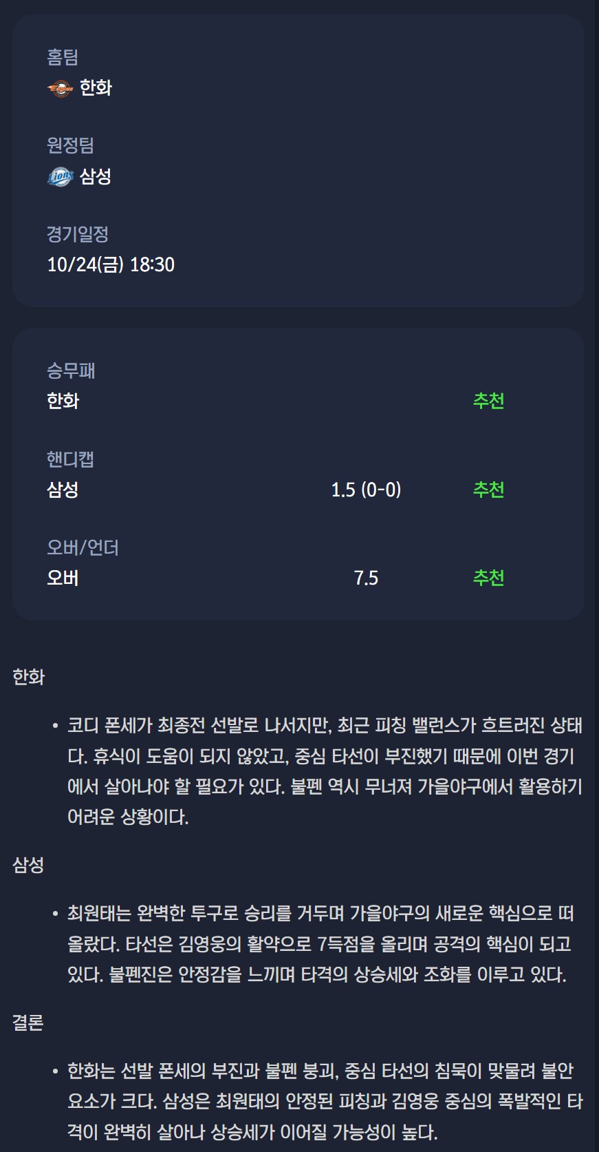2025-10-24 KBO 분석자료 스포츠 무료중계 / 스포츠 중계