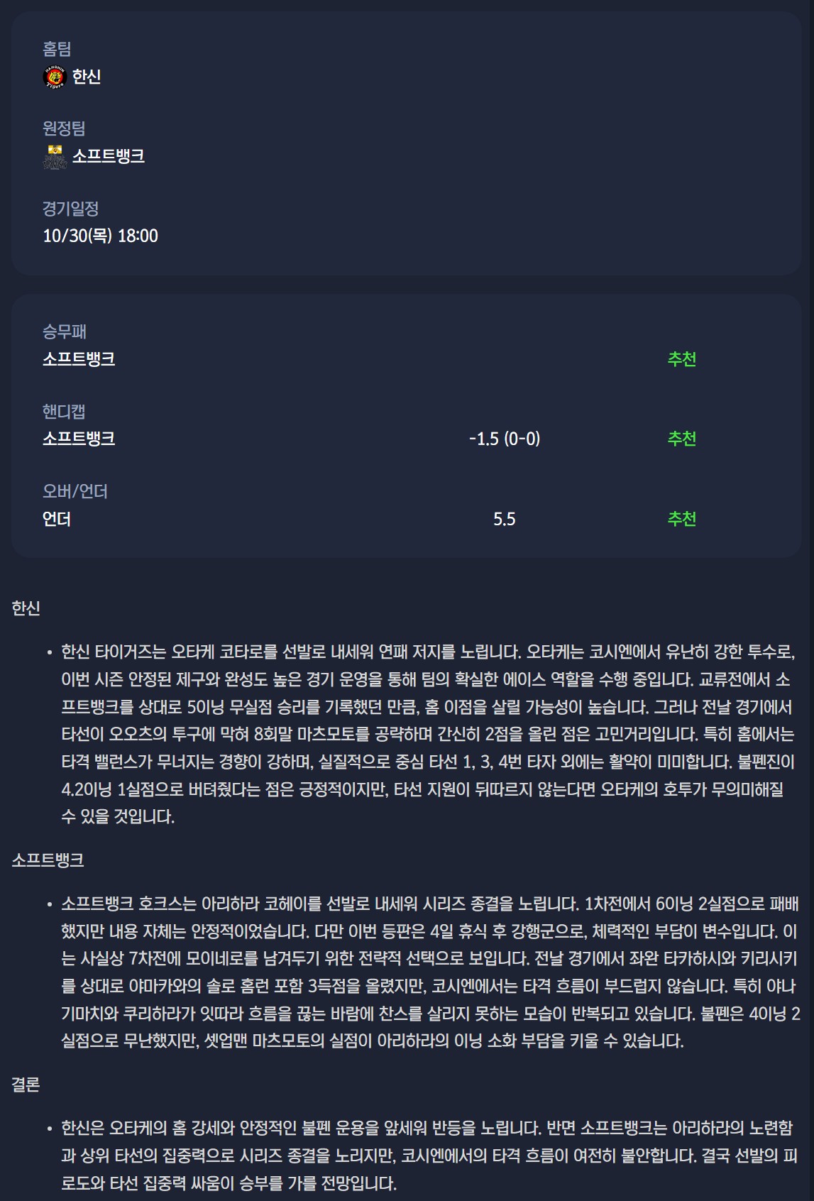 2025-10-30 NPB 분석자료 스포츠 무료중계 / 스포츠 중계