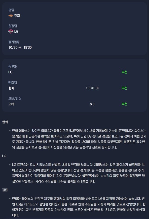 2025-10-30 KBO 분석자료 스포츠 무료중계 / 스포츠 중계