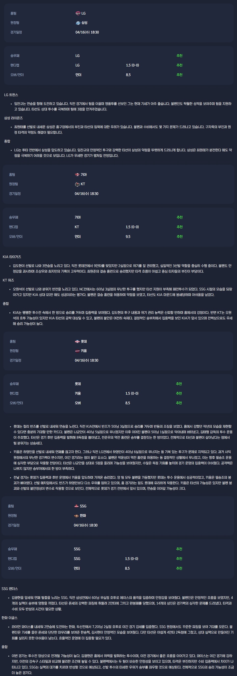 2025-04-16 KBO 야구 스포츠 무료중계 / 스포츠 중계