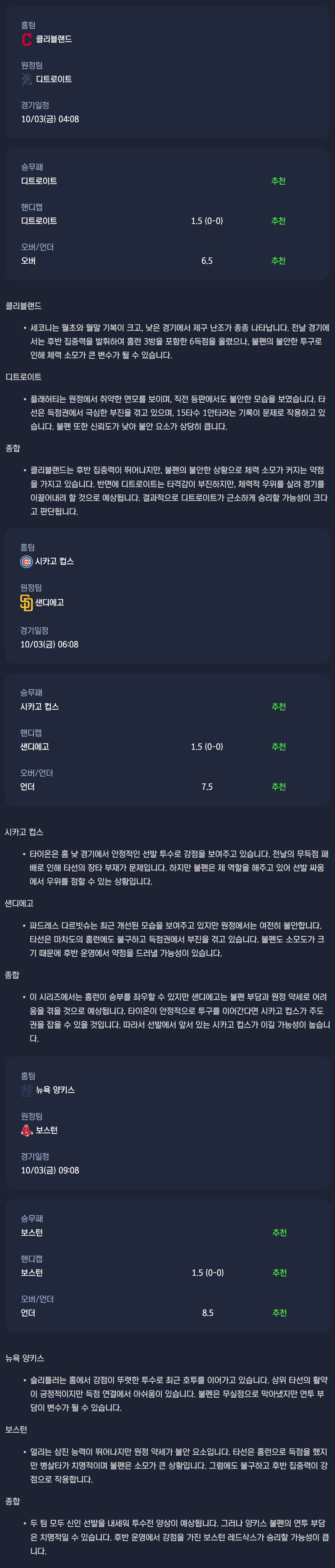 2025-10-03 MLB 분석자료 스포츠 무료중계 / 스포츠 중계