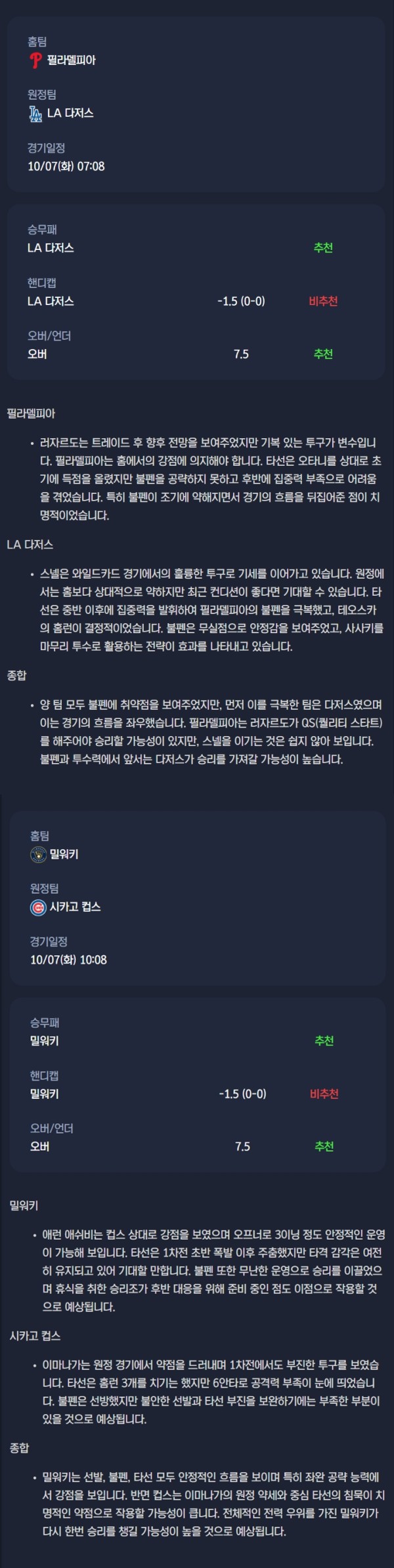 2025-10-07 MLB 분석자료 스포츠 무료중계 / 스포츠 중계