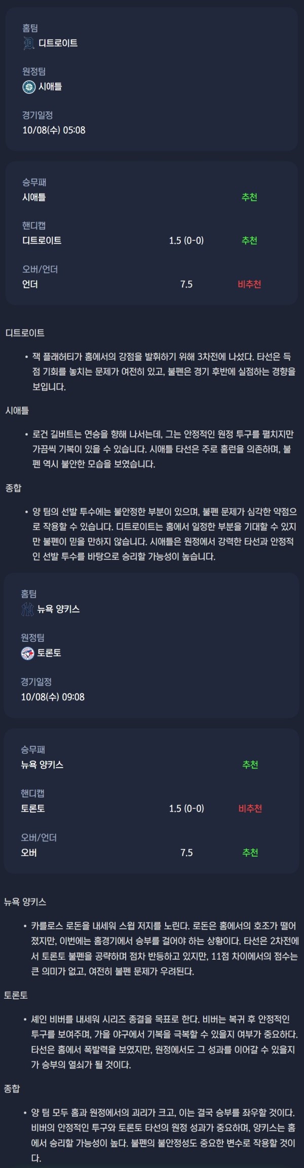 2025-10-08 MLB 분석자료 스포츠 무료중계 / 스포츠 중계