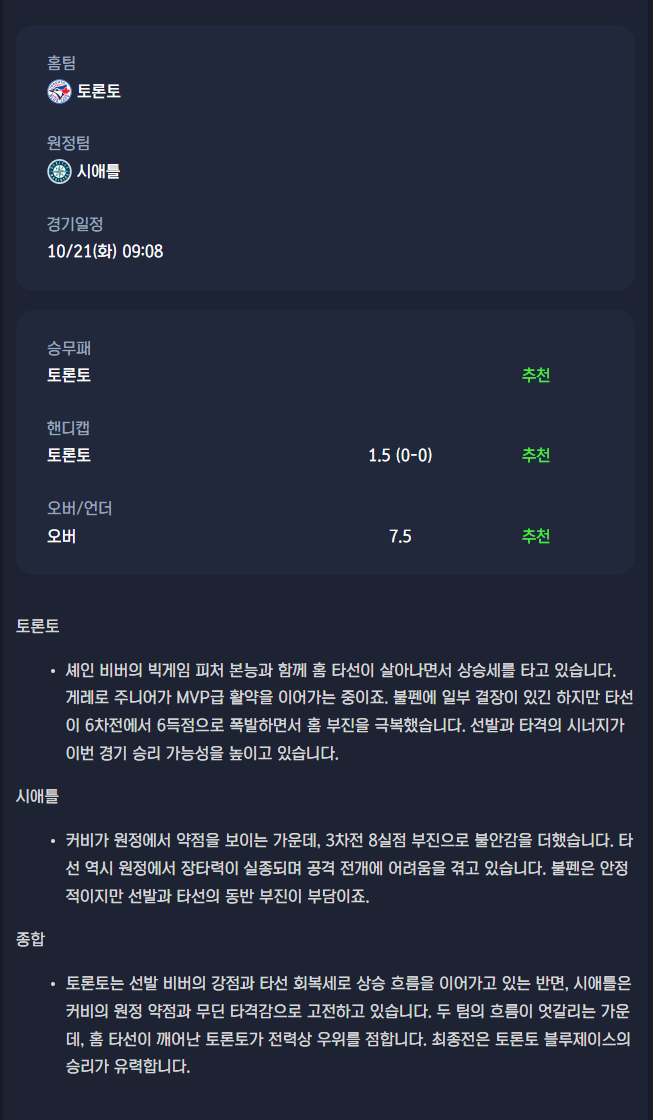 2025-10-21 MLB 분석자료 스포츠 무료중계 / 스포츠 중계