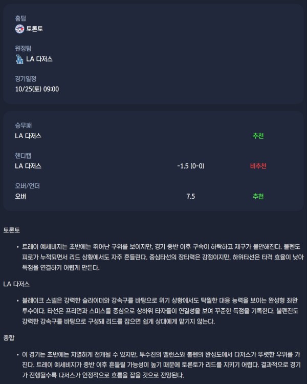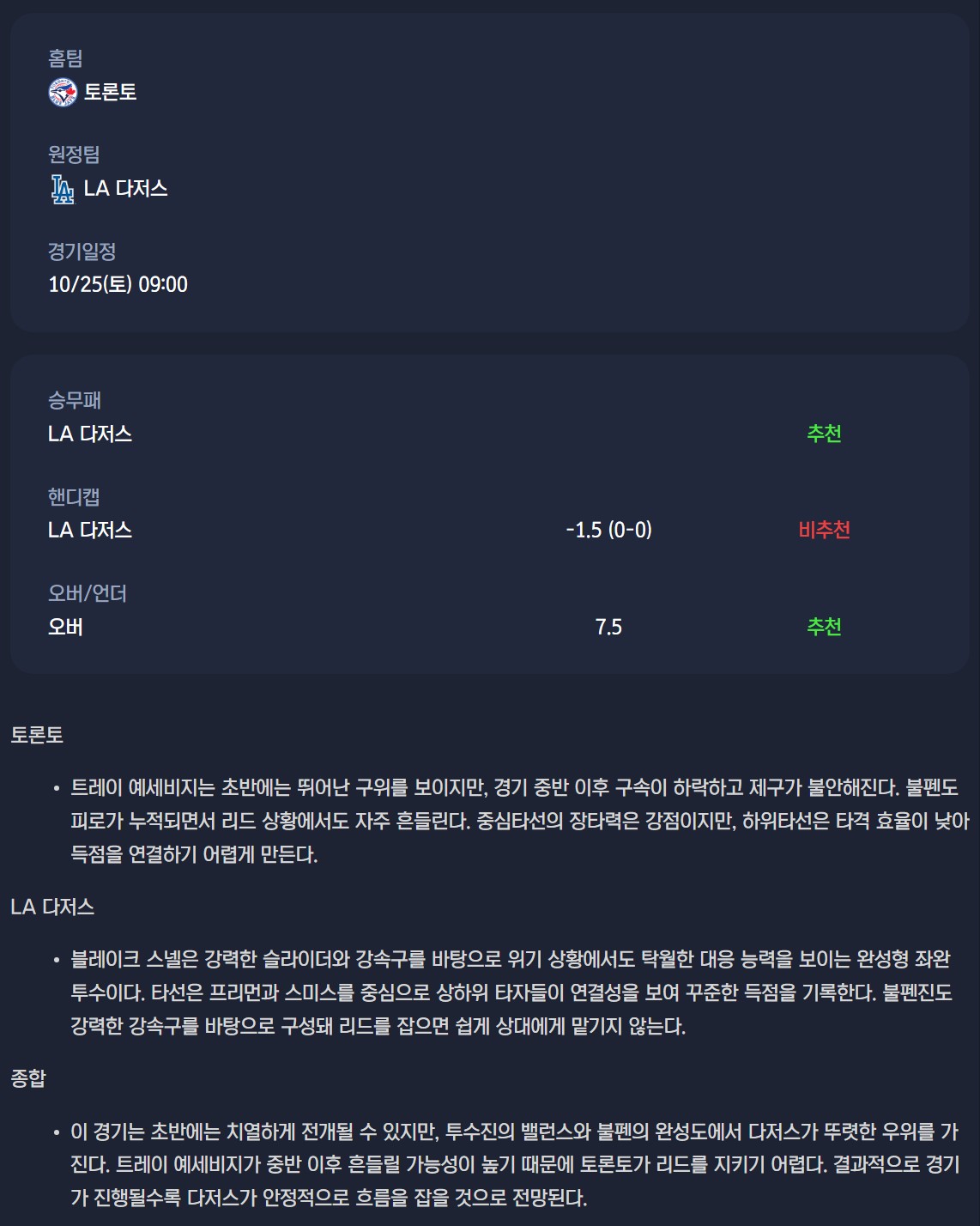 2025-10-25 MLB 분석자료 스포츠 무료중계 / 스포츠 중계