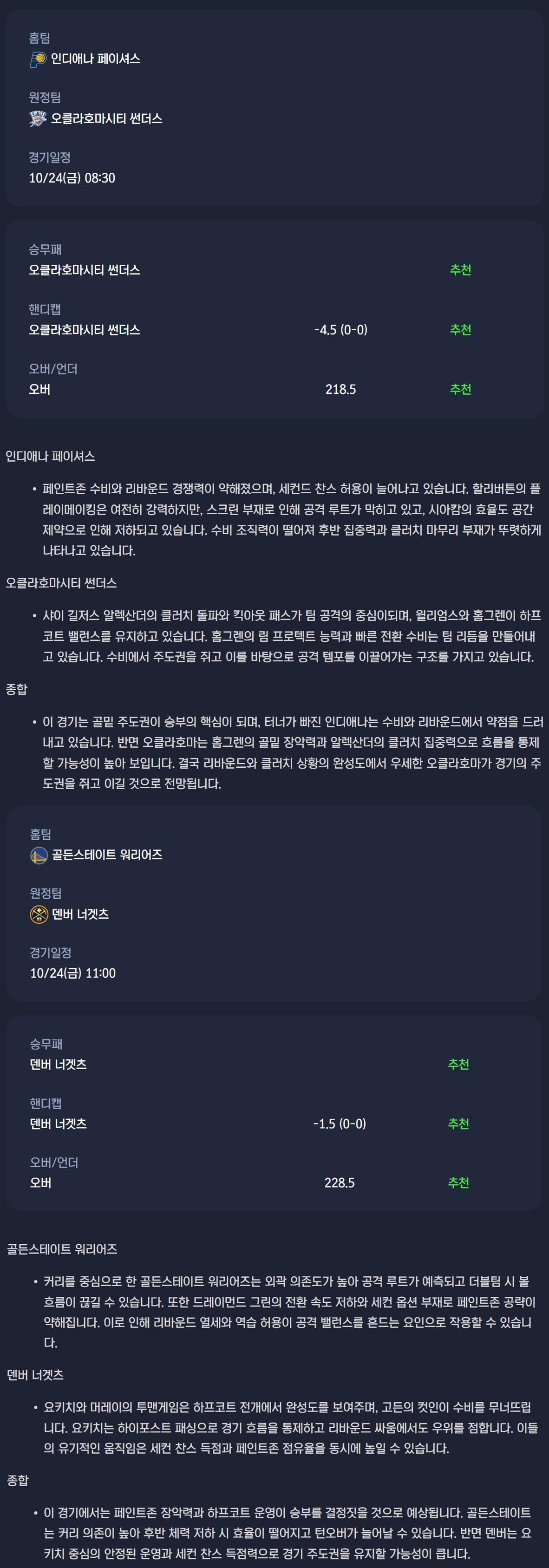 2025-10-24 NBA 분석자료 스포츠 무료중계 / 스포츠 중계