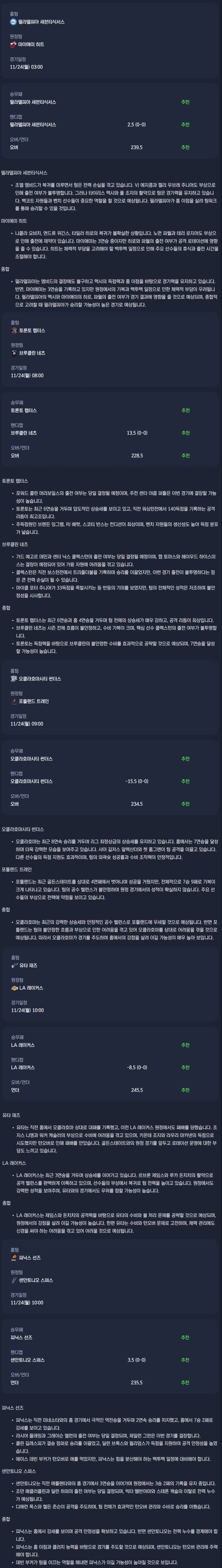2025년 11월 24일 NBA분석자료 / 미국농구분석