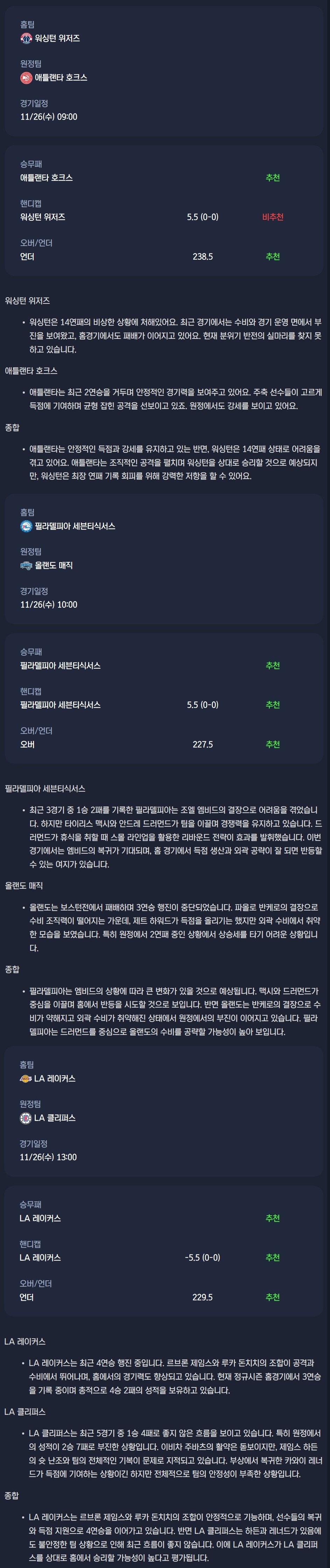 2025년 11월 26일 NBA분석자료 / 미국농구분석