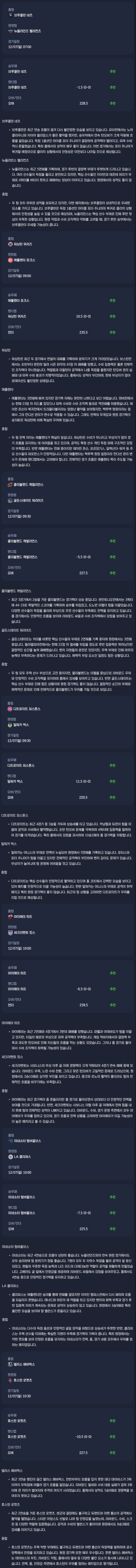 2025년 12월 07일 NBA 분석자료 / 미국농구분석