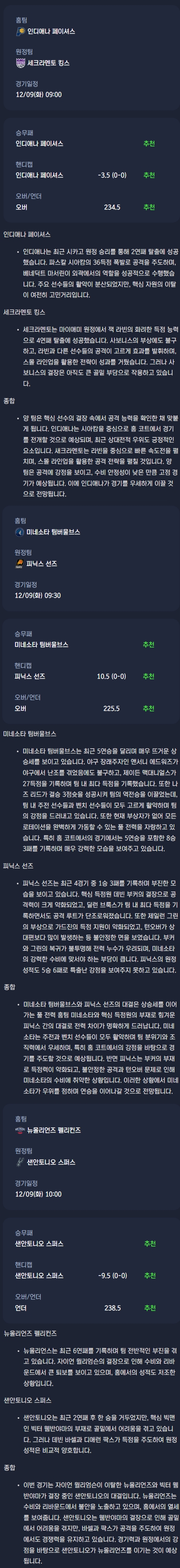 2025년 12월 09일 NBA 분석자료 / 미국농구분석