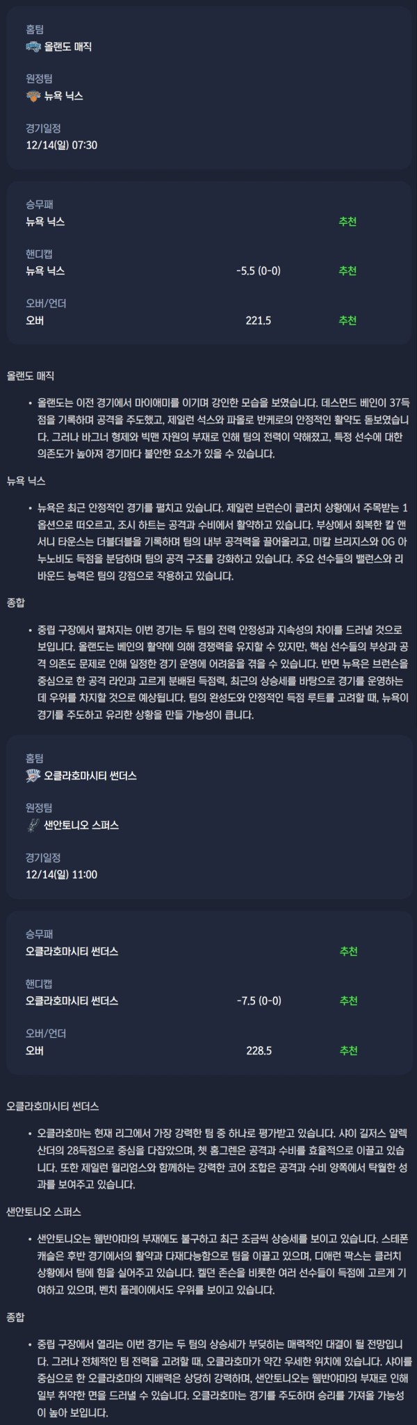 2025년 12월 14일 NBA 분석자료 / 미국농구분석