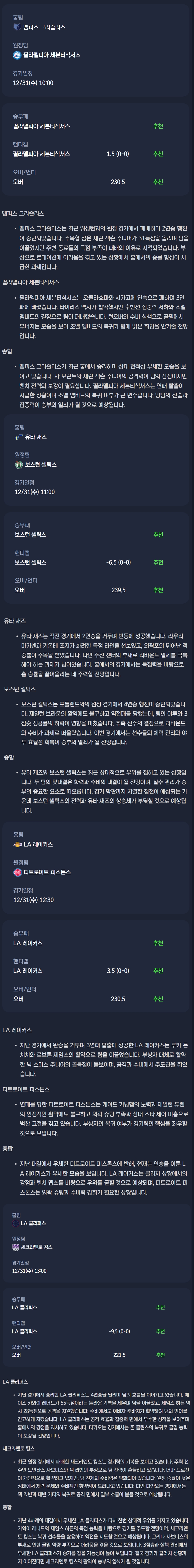 2025년 12월 24일 NBA 분석자료 / 미국농구분석