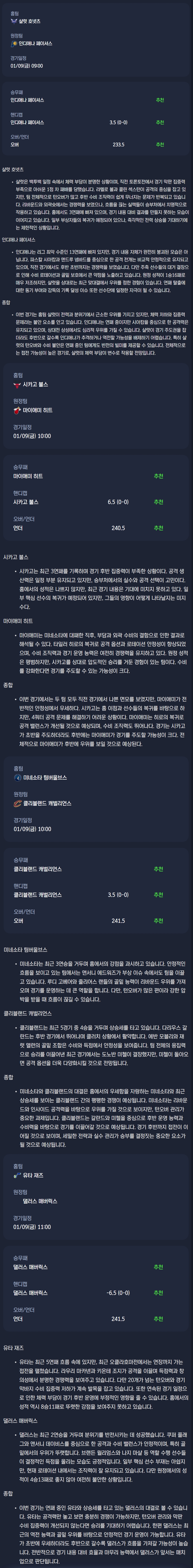 2026년 01월 09일 NBA 분석자료 / 미국농구분석