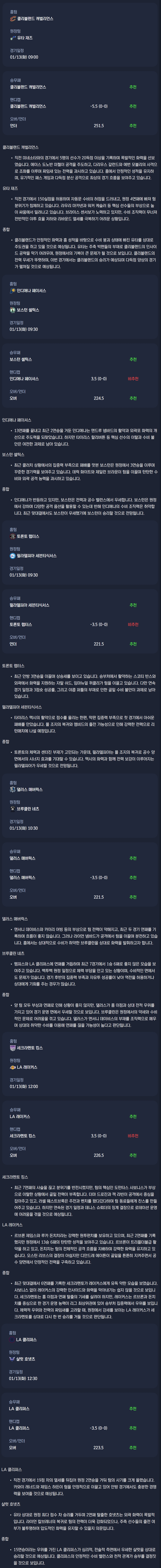 2026년 01월 13일 NBA 분석자료 / 미국농구분석