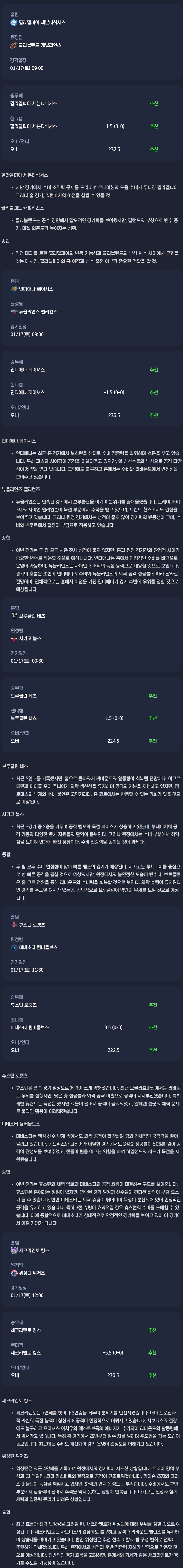 2026년 01월 17일 NBA 분석자료 / 미국농구분석