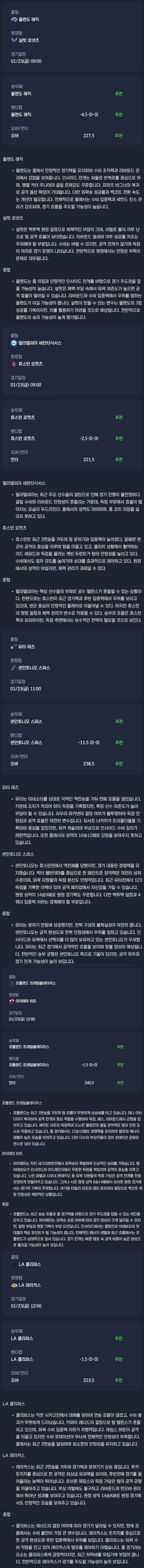 2026년 01월 23일 NBA 분석자료 / 미국농구분석