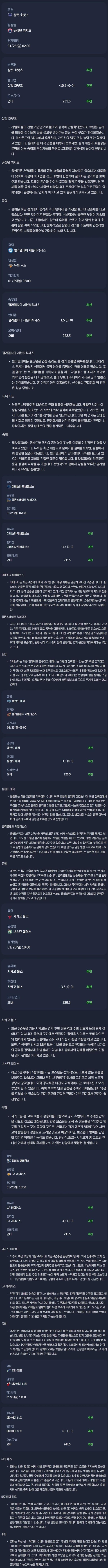 2026년 01월 25일 NBA 분석자료 / 미국농구분석