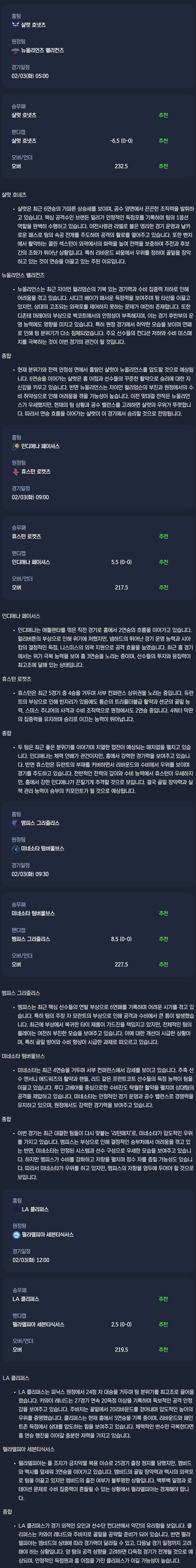 2026년 02월 03일 NBA 분석자료 / 미국농구분석