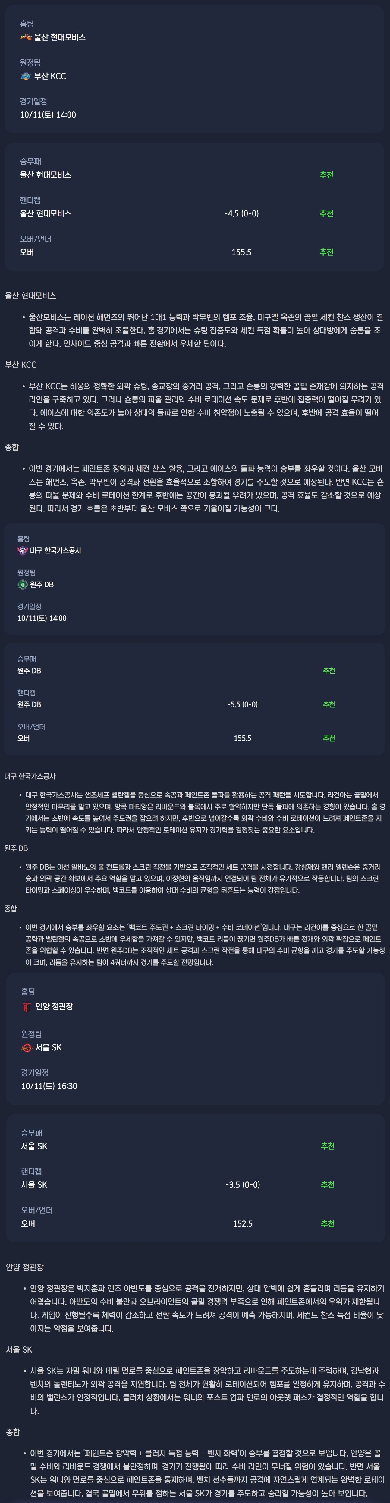 2025-10-11 KBL 분석자료 스포츠 무료중계 / 스포츠 중계