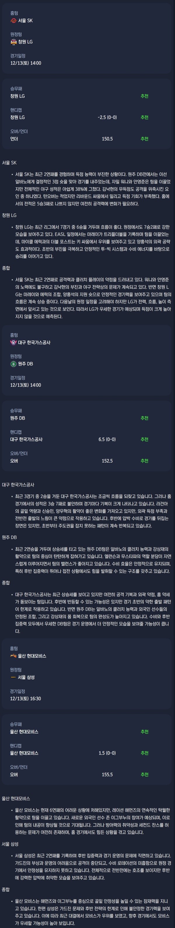 2025년 12월 08일 KBL 분석자료 / 남자농구분석