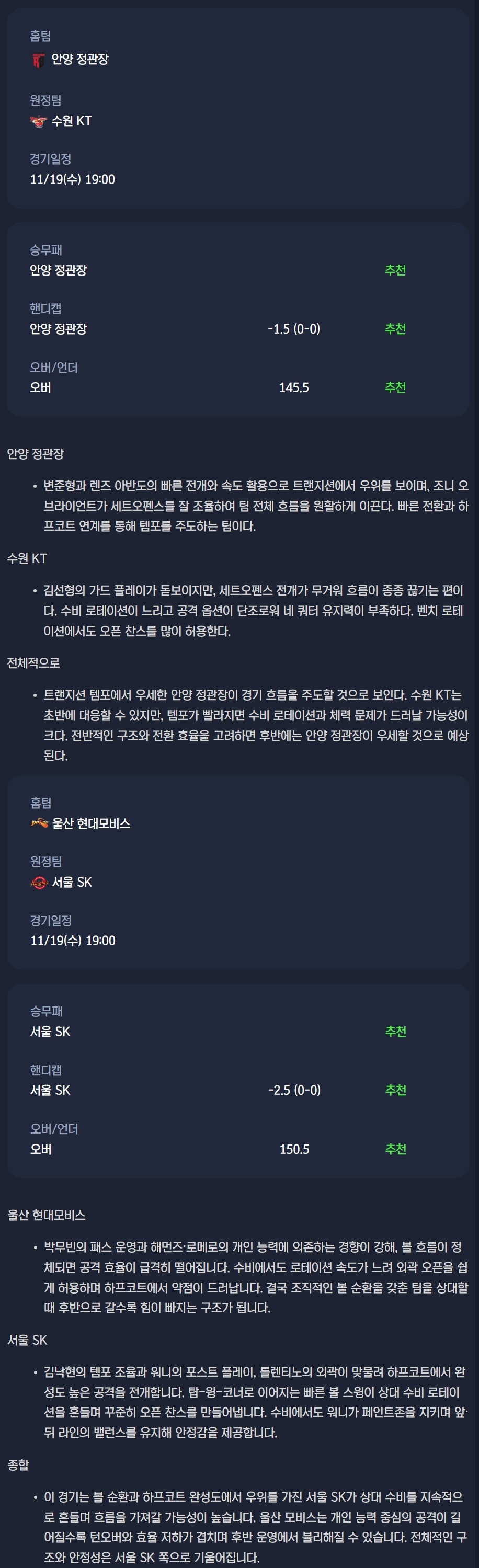 2025-11-19 KBL 분석자료 스포츠 무료중계 / 스포츠 중계