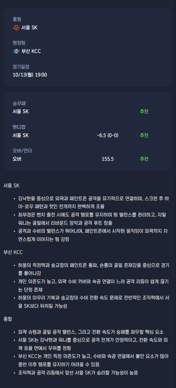 2025-10-13 KBL 분석자료 스포츠 무료중계 / 스포츠 중계