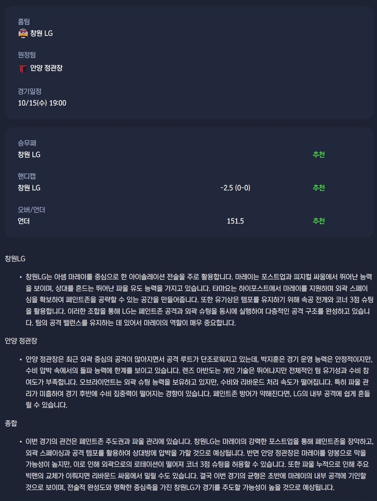 2025-10-15 KBL 분석자료 스포츠 무료중계 / 스포츠 중계