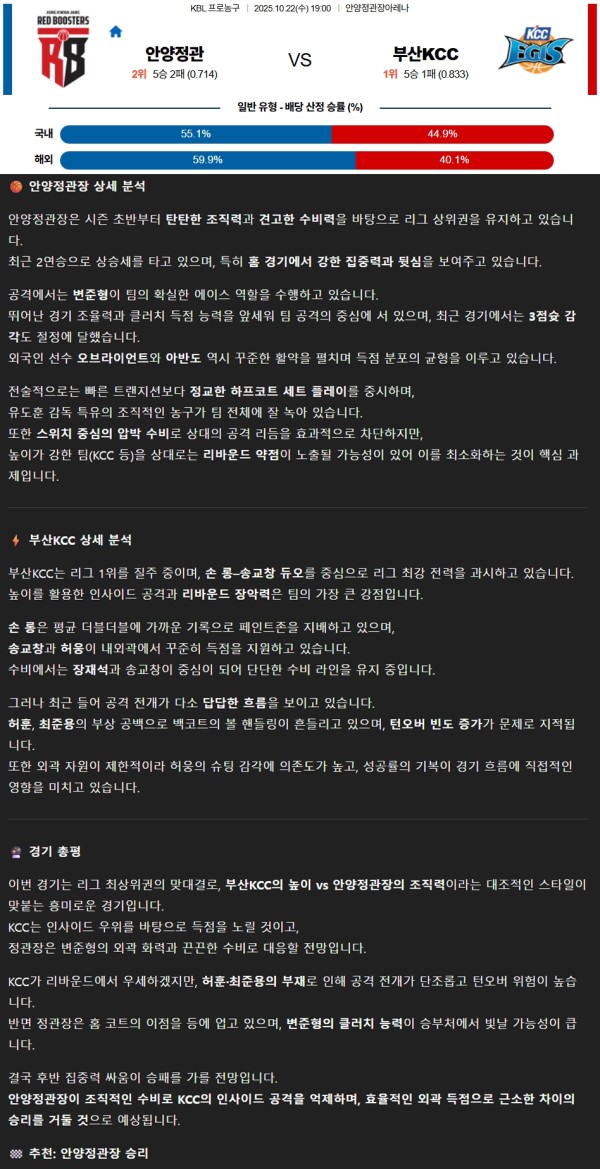 2025-10-22 KBL 분석자료 스포츠 무료중계 / 스포츠 중계