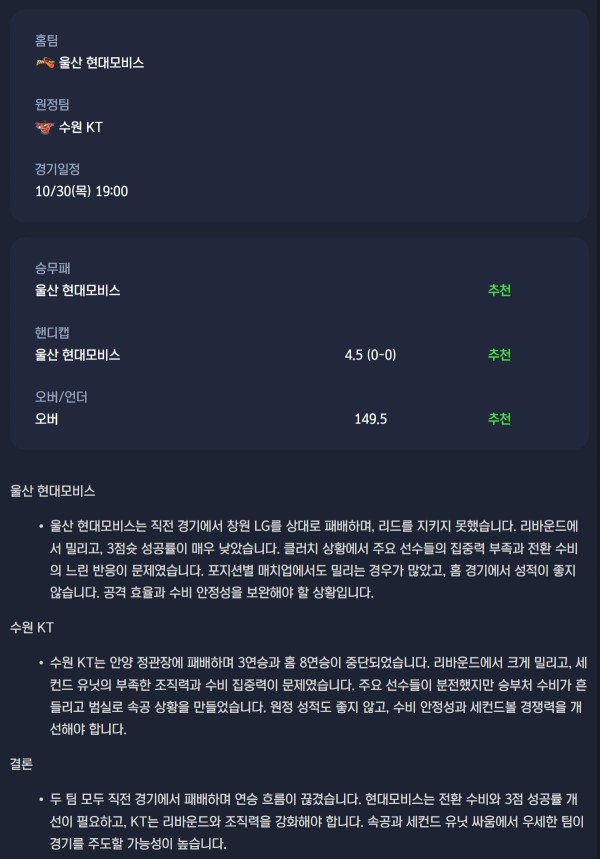 2025-10-30 KBL 분석자료 스포츠 무료중계 / 스포츠 중계