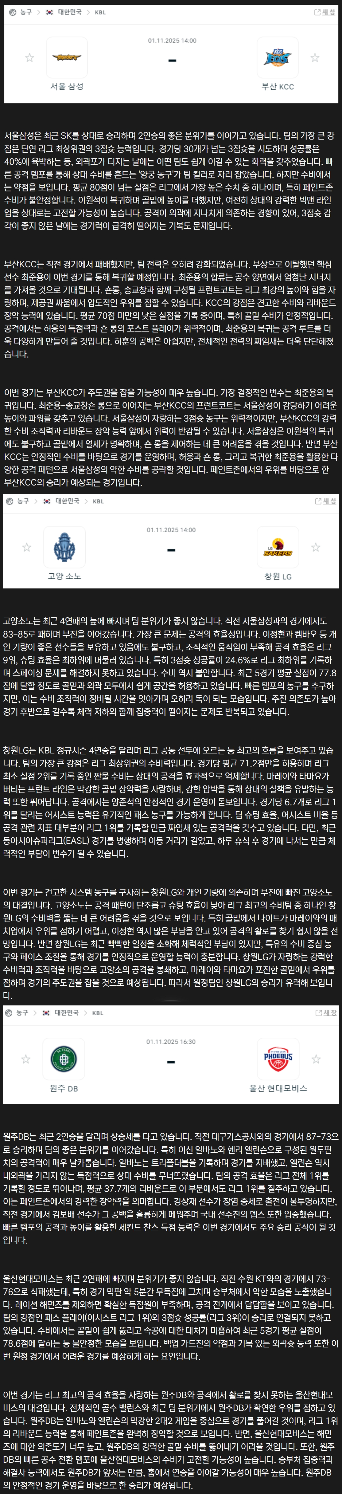 2025-11-01 KBL 분석자료 스포츠 무료중계 / 스포츠 중계