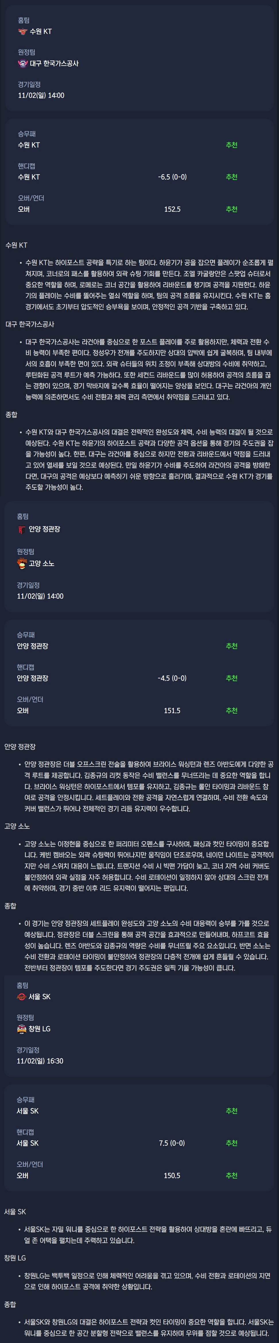 2025-11-02 KBL 분석자료 스포츠 무료중계 / 스포츠 중계