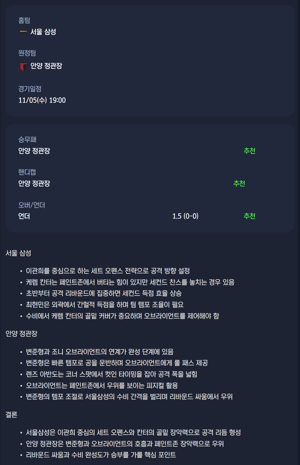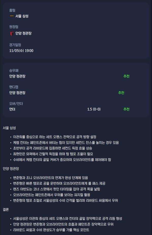 2025-11-05 서울 삼성 vs 안양 정관장 KBL 분석자료 스포츠 무료중계 / 스포츠 중계