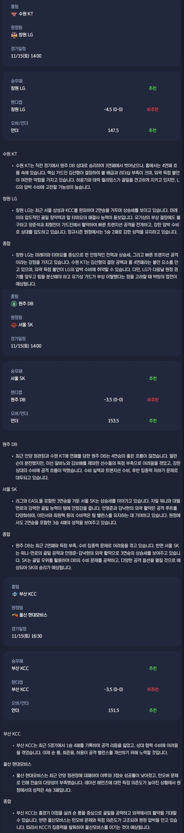 2025-11-15 국내농구 KBL 분석자료 스포츠 무료중계 / 스포츠 중계