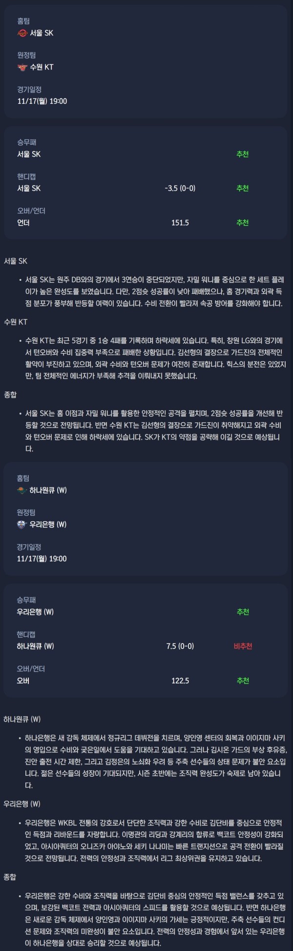 2025-11-17 KBL / WKBL 분석자료 스포츠 무료중계 / 스포츠 중계