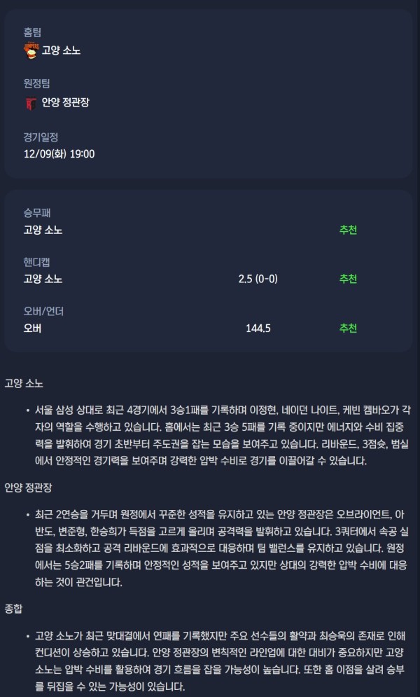 2025년 12월 09일 KBL 분석자료 / 남자농구분석