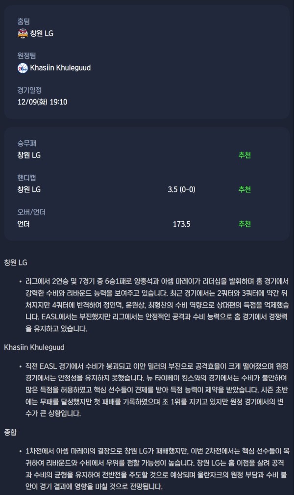 2025년 12월 09일 KBL 분석자료 / 남자농구분석