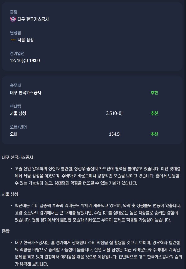 2025년 12월 08일 KBL 분석자료 / 남자농구분석