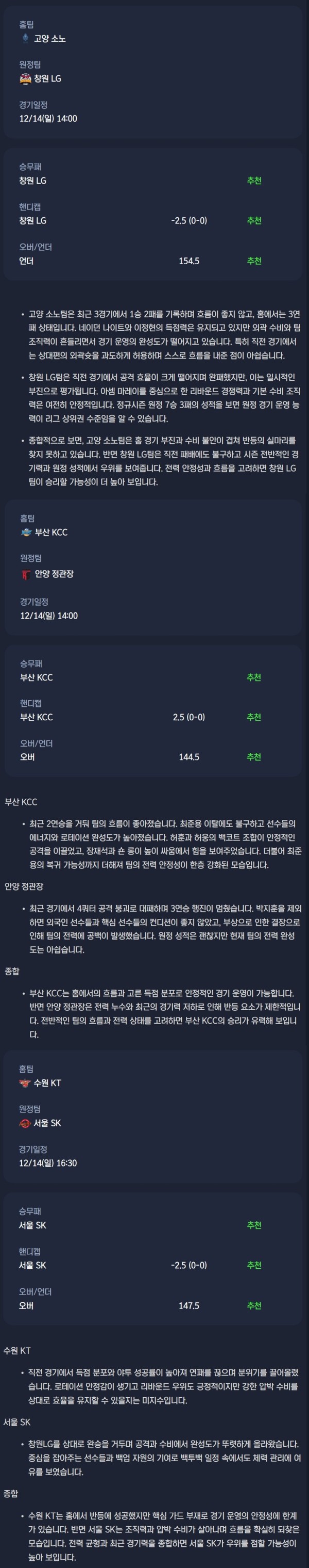 2025년 12월 14일 KBL 분석자료 / 남자농구분석